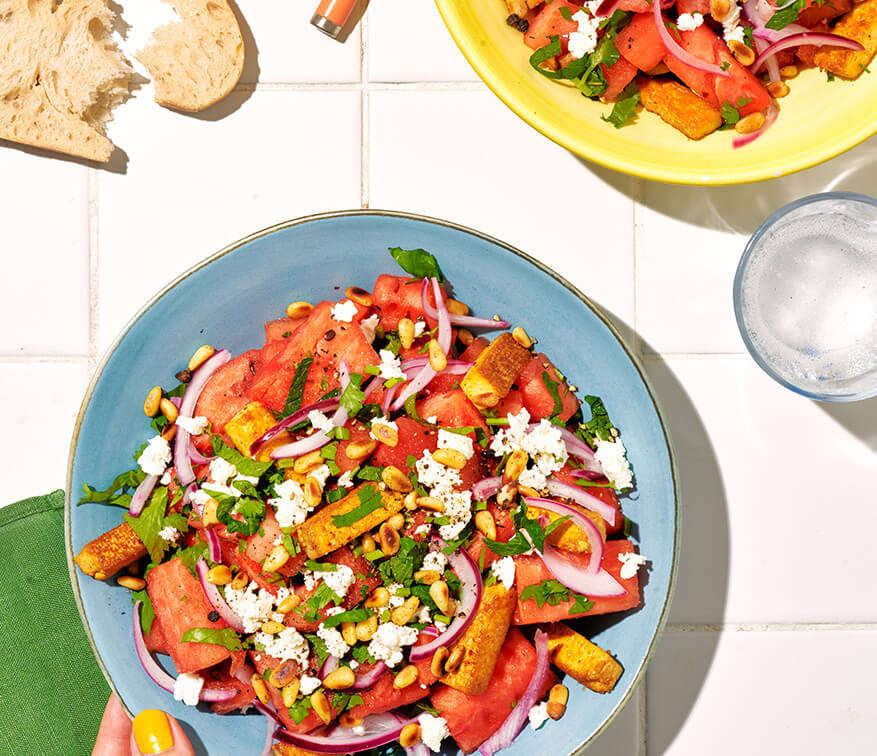 Erfrischender Wassermelonen Salat mit Tofu & Feta