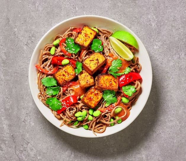 Sommerlicher Nudelsalat mit Tofu & Rucola